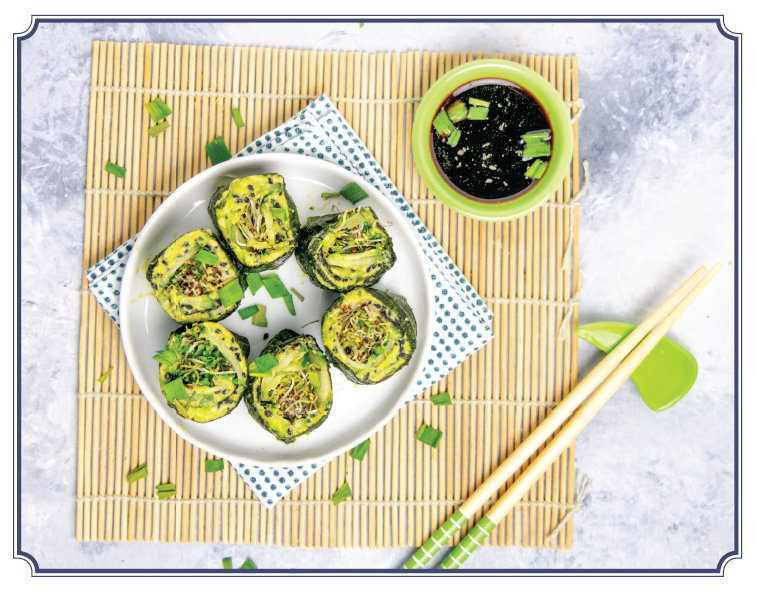 Jest to zasadniczo leniwa wersja sushi, którą przygotowywałam, gdy wraz ze współlokatorami organizowaliśmy wieczór sushi. Bardzo lubię przemycać do tych rolek kiełki brokuła, by skonsumować istotne związki siarki. Jeśli nie przepadasz za kiełkami brokułów, to ich pysznym zamiennikiem (choć zawierającym nieco więcej węglowodanów) jest pokrojona w cienkie plasterki papryka – czerwona, pomarańczowa lub żółta.